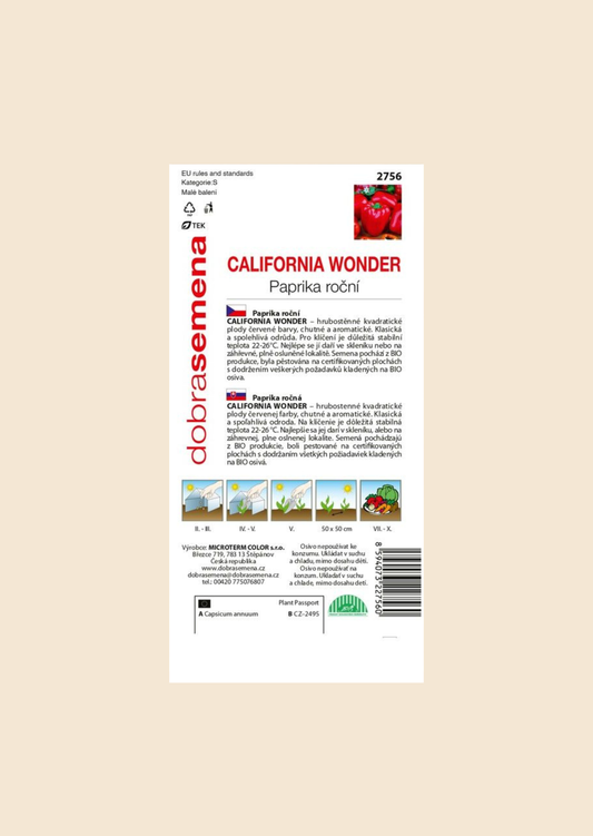 BIO Paprika roční California Wonder kvadratická červená 0,3 g