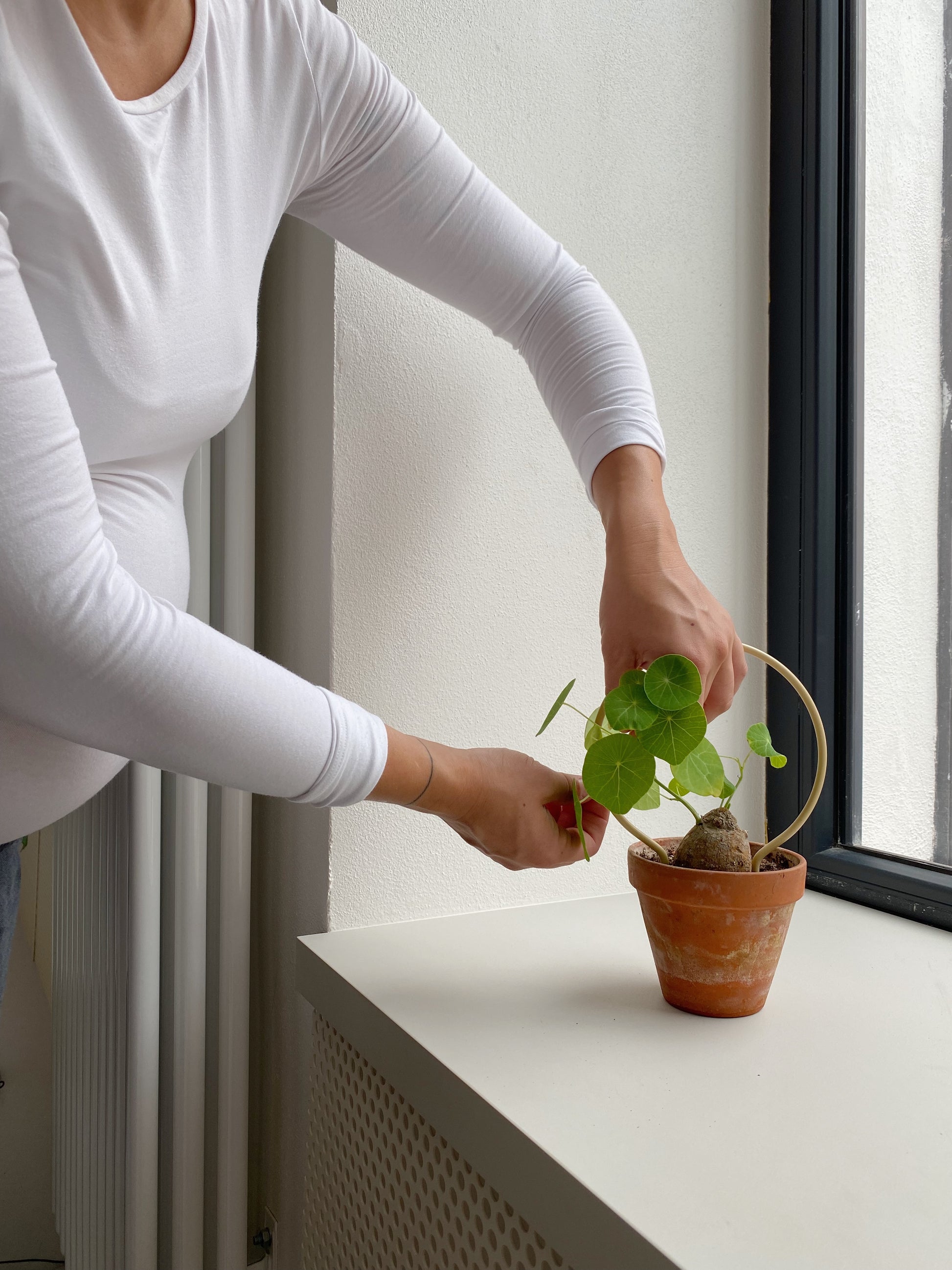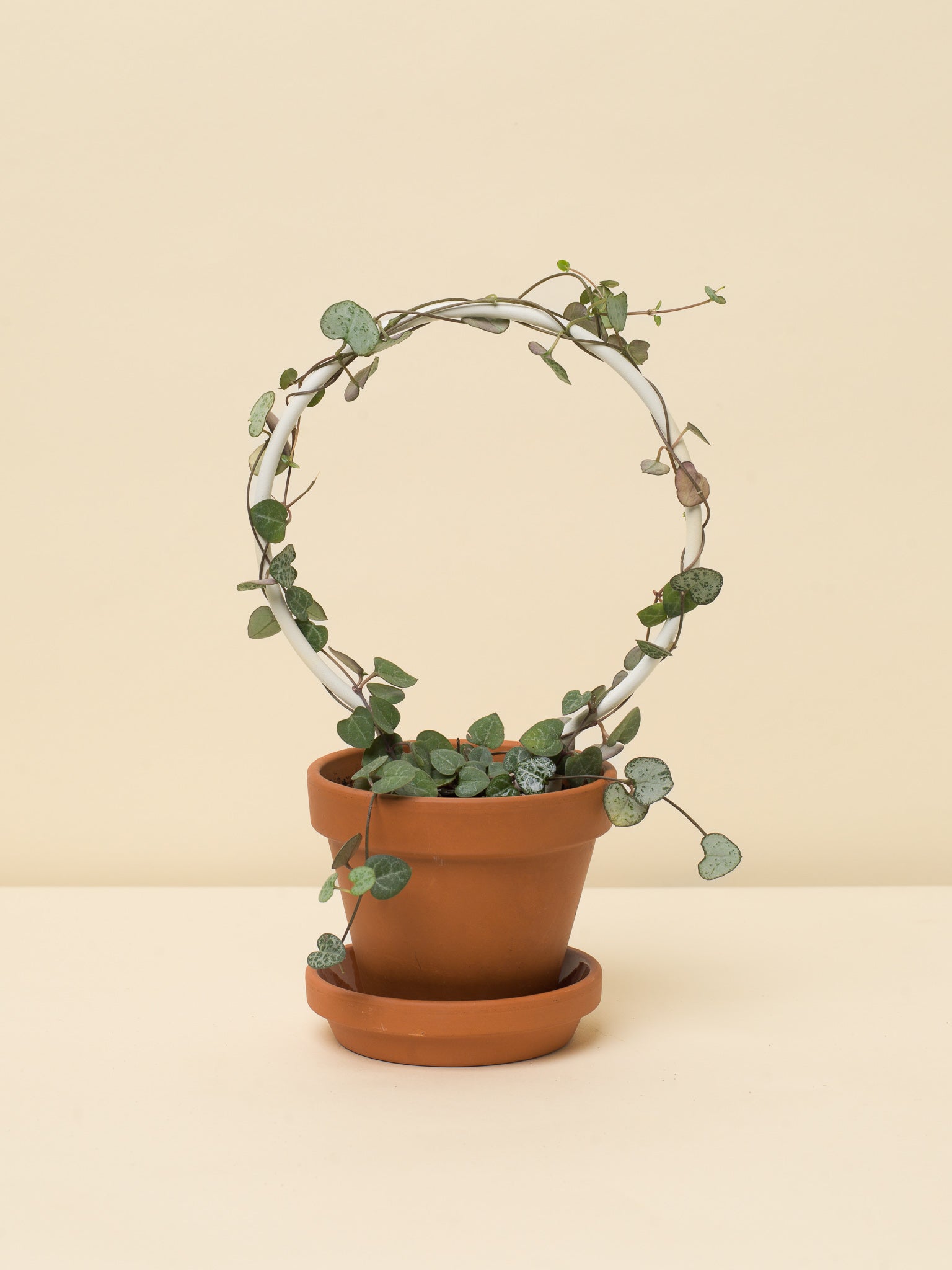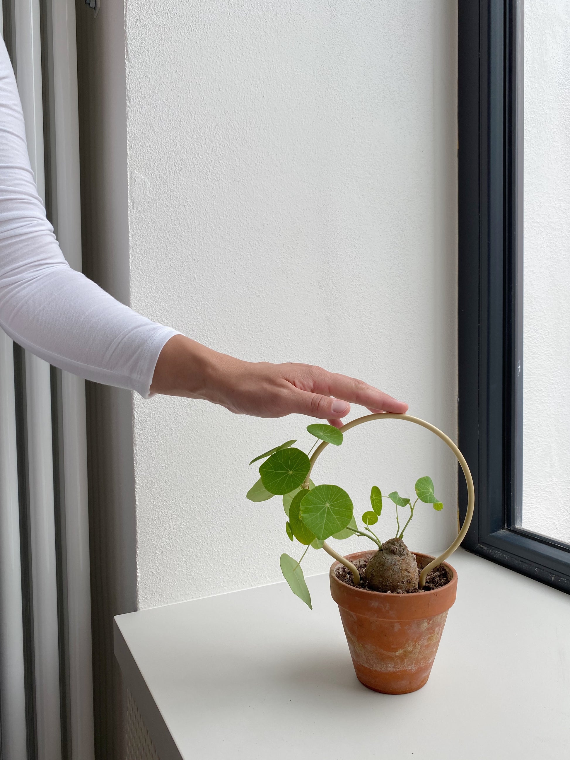 Obruč je skvělý pomocník pro přepadavé plazivky, které které už nechcete nechat přepadat, ale chcete si vytvořit prorostlé kolo na parapetu. Náš tip je použít obruč pro malou monsteru adansonii, šplhavnici, tahavé philodendrony a monstery nebo krátké výhony kaucidoformních rostlin jako je třeba stephania erecta.