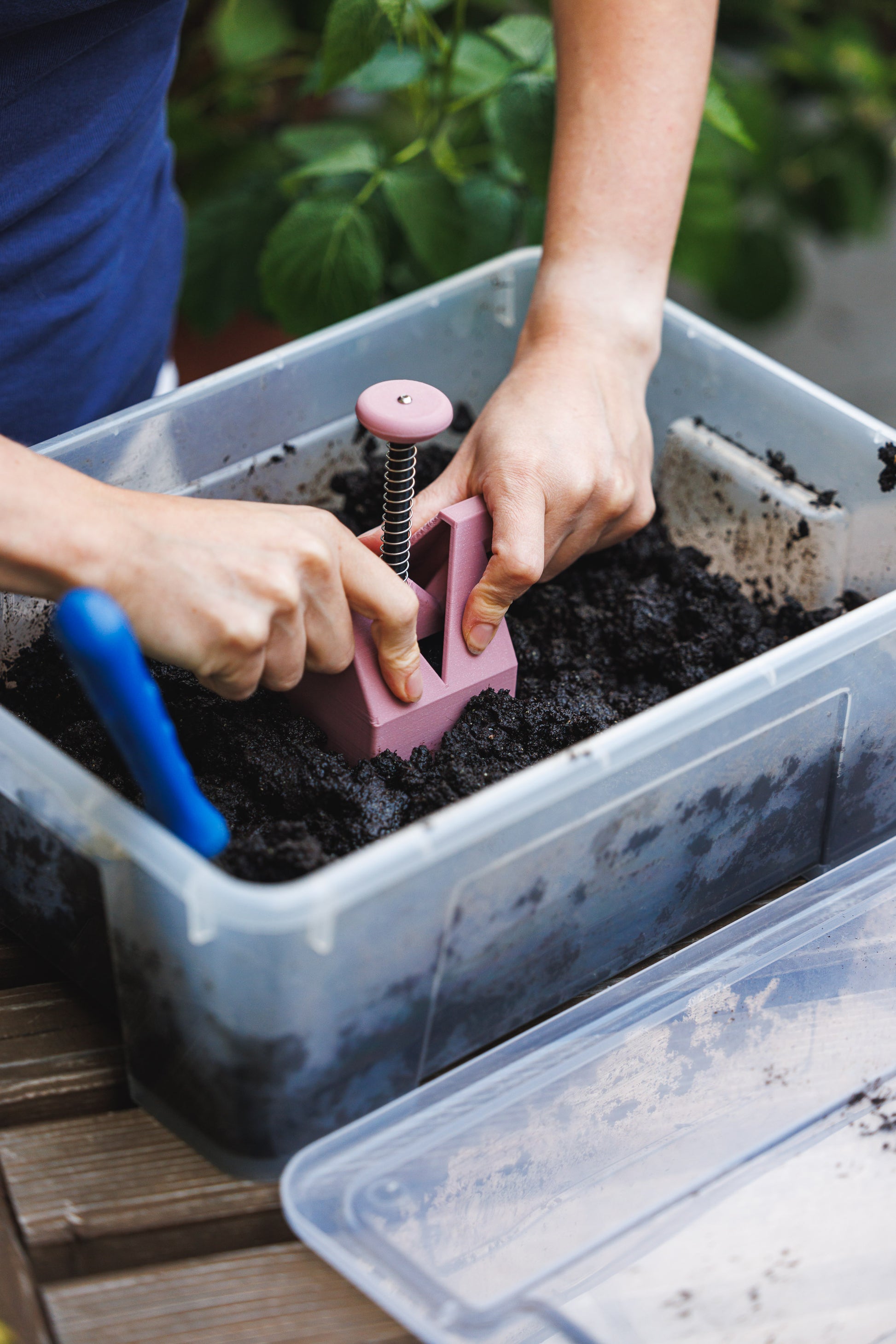 - Naplňte kostkovač dostatečně vlhkým výsevním substrátem substrátem.